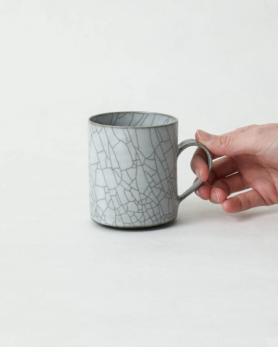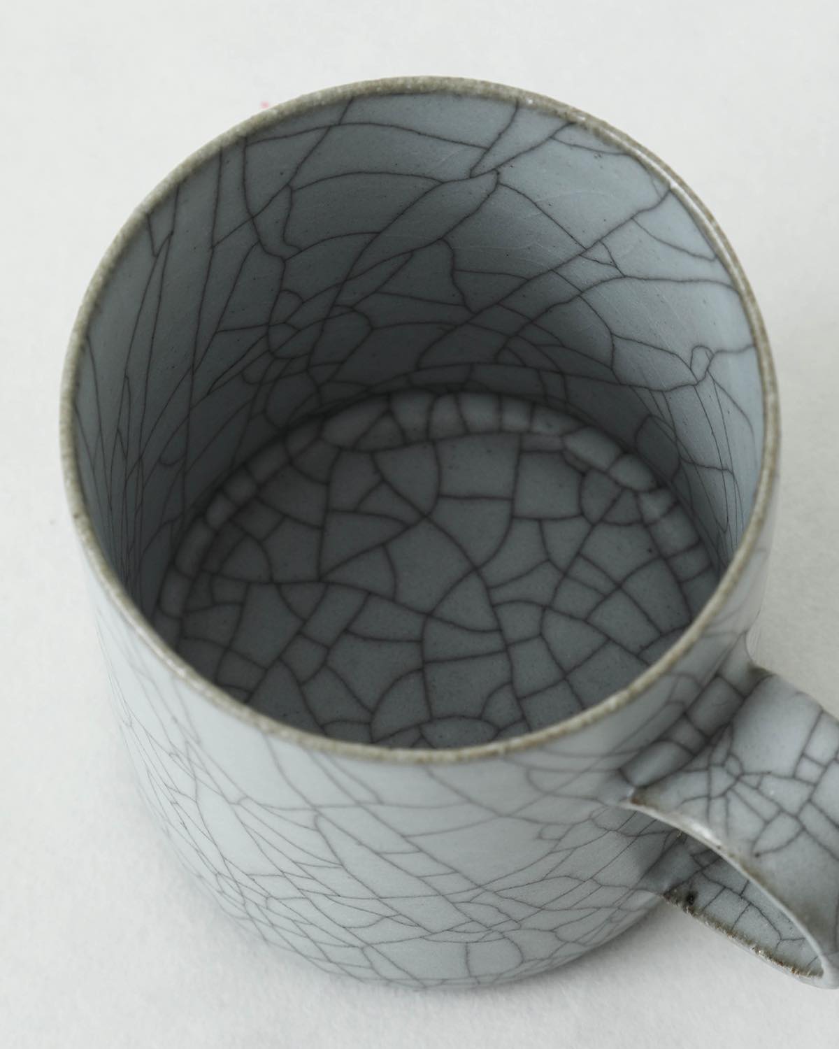 京都・亀岡にて、2008年より作陶をスタートした陶芸家の〈高田志保〉。表面のヒビ模様が印象的な炭貫入を得意とし、炭入りの器を中心に製作を行っています。日常生活の中で、思わず手に取りたくなるような造形美と、透き通ったホワイトグレーの釉薬が特徴です。