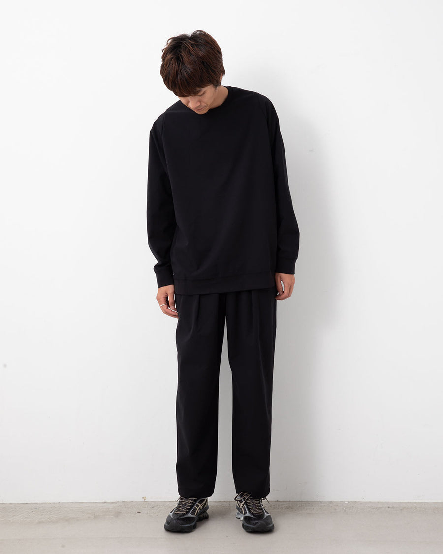 360方向に快適なストレット性と強靭なキックバックを誇る”SOLOTEX”素材を使用し、ドット状の凸凹組織によって肌との接地面積を減らし衣服内の通気を強化した独自のパターンワークで、狭い機内でも動きやすく快適な着心地です。