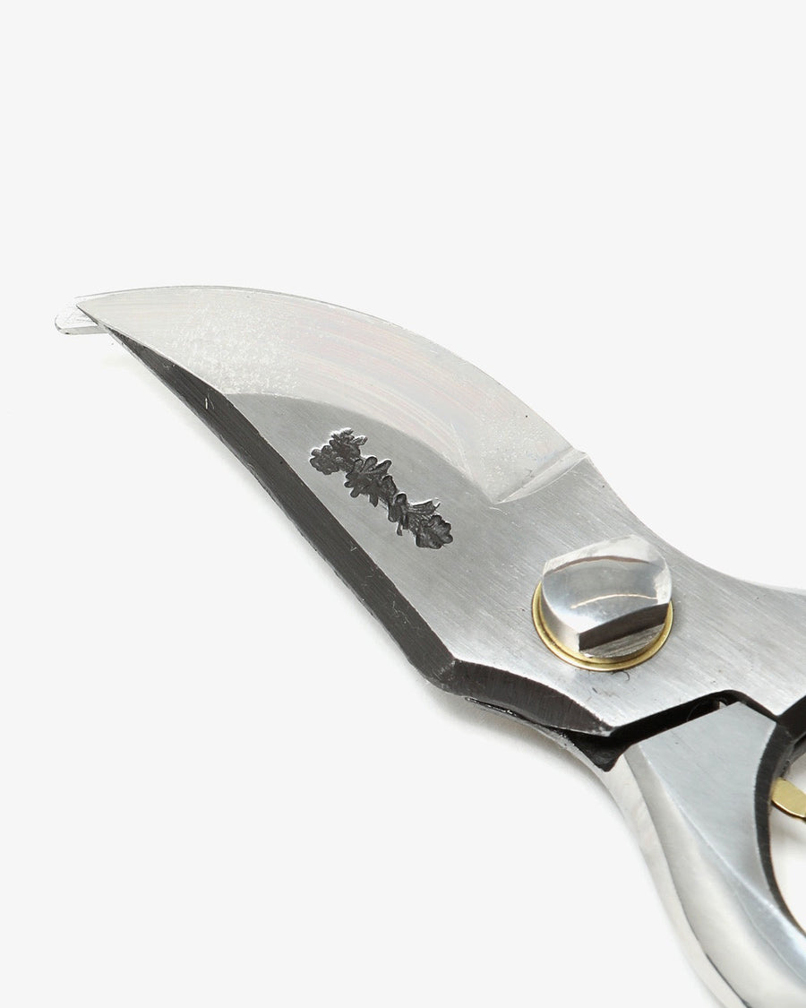 〈外山刃物〉の鋏は、「火造り鍛造」「裏砥ぎ」「合刃どり」など数多くの伝統技術をもって造りだされており、プロの園芸家にも信頼される確かな品質を誇ります。近年では、“伝統技と先端機械技術の融合“にも取り組み、より高度な品質を追求し新たな技法にチャレンジしています。