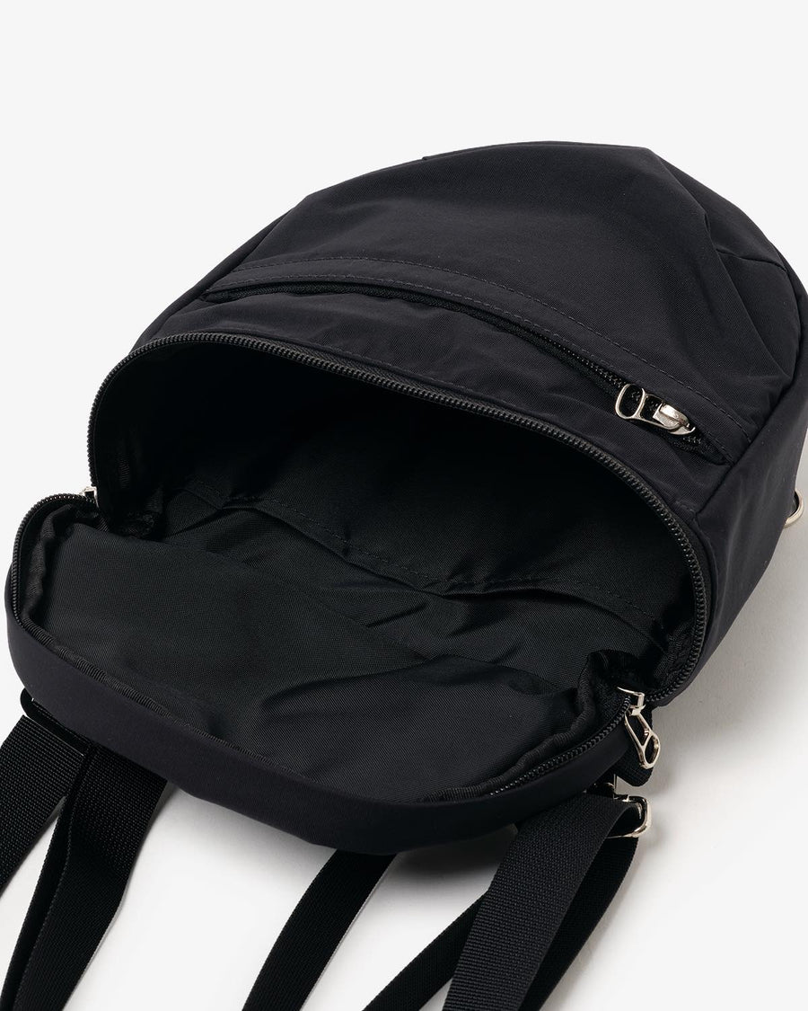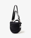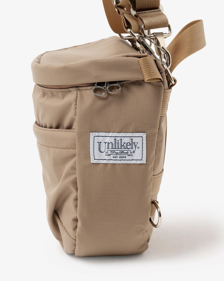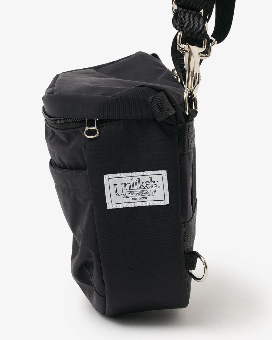 半円・円柱型のポップなフォルムに、小物を収納に便利なマルチポケットを配し、当時の仕様を踏襲したストラップを加えて、アンライクリーなデザインに仕上げています。