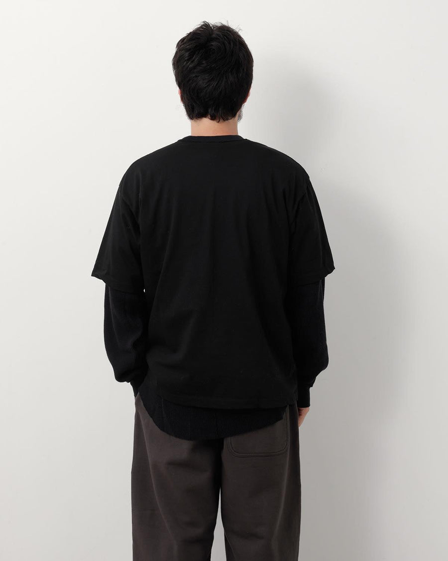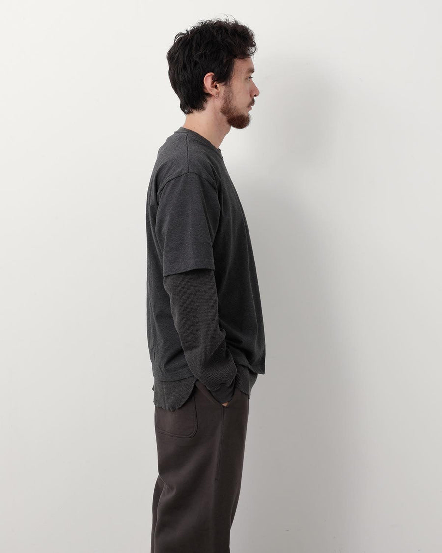 Tシャツと長袖サーマルを重ね着したようなスタイルを楽しめるレイヤーカットソーです。