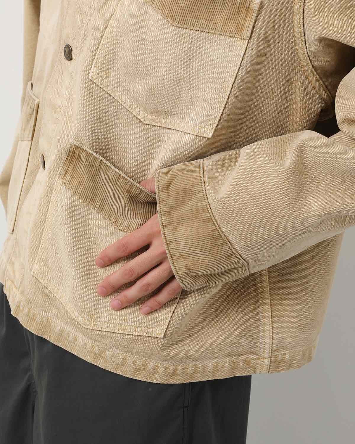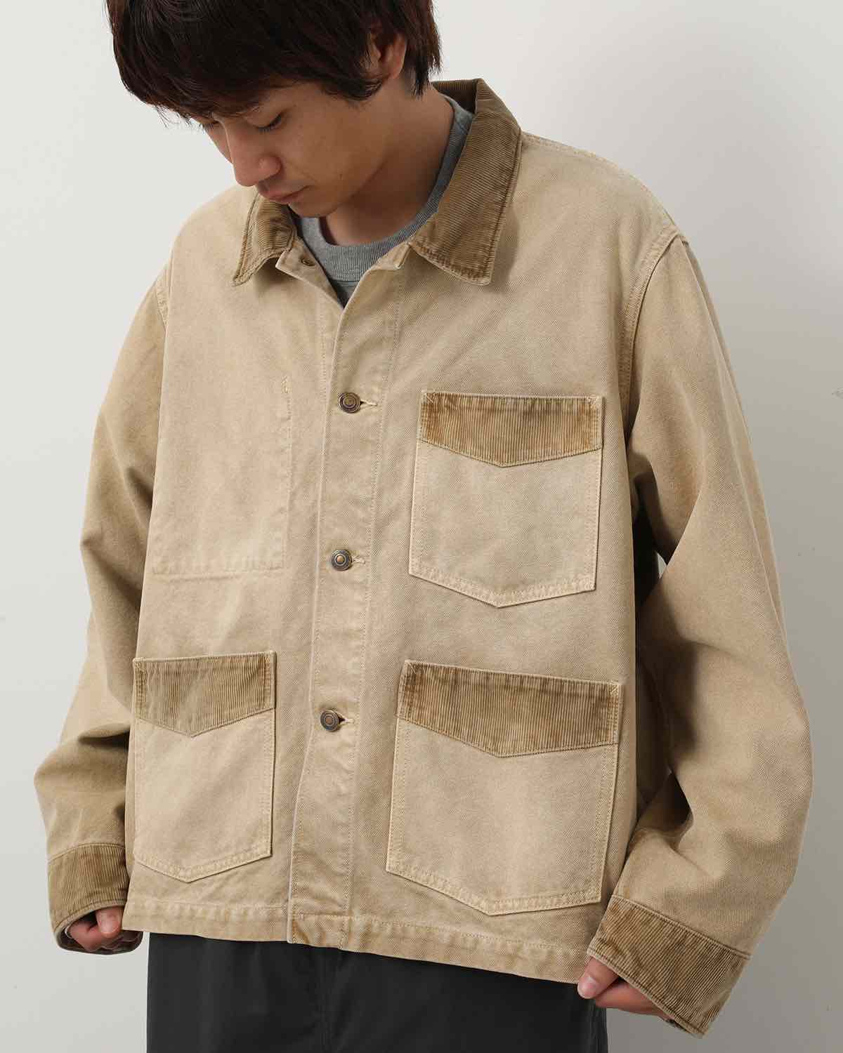 1940年代のハンティングジャケットをデザインソースに、当時の着丈が短め、襟、袖口、ポケット口など使用用途の多い部分はコーデュロイにて補強しており、当時の雰囲気そのままに現代的なシルエットで〈Unlikely〉流にアレンジしています。