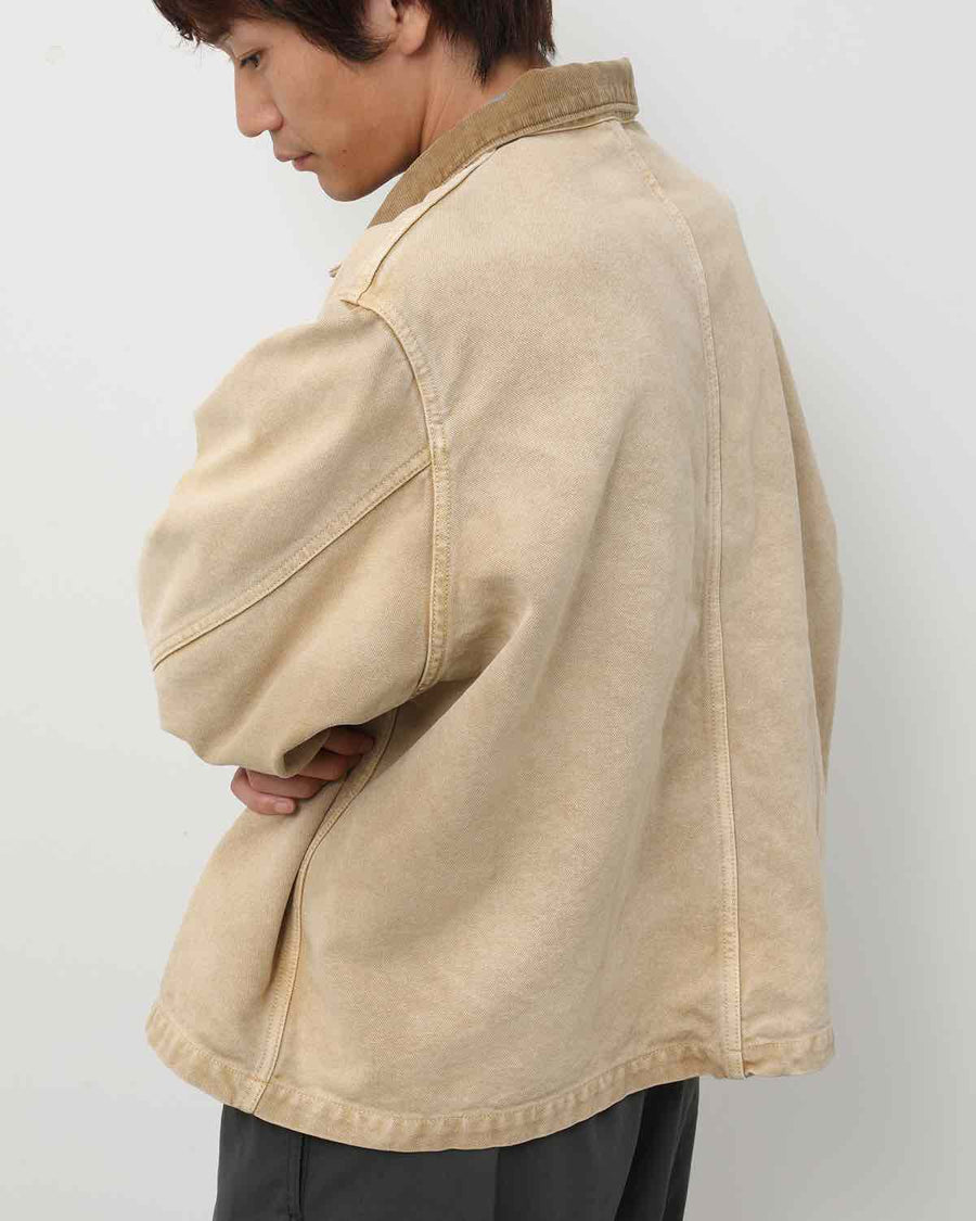 とても丈夫な8号帆布をバイオウォッシュで柔らかく仕上げた表地を使用し、多くの工程を踏みながら職人の手作業で1つ1つユーズド加工を施した「UNLIKELY OLD HUNTER JACKET」です。