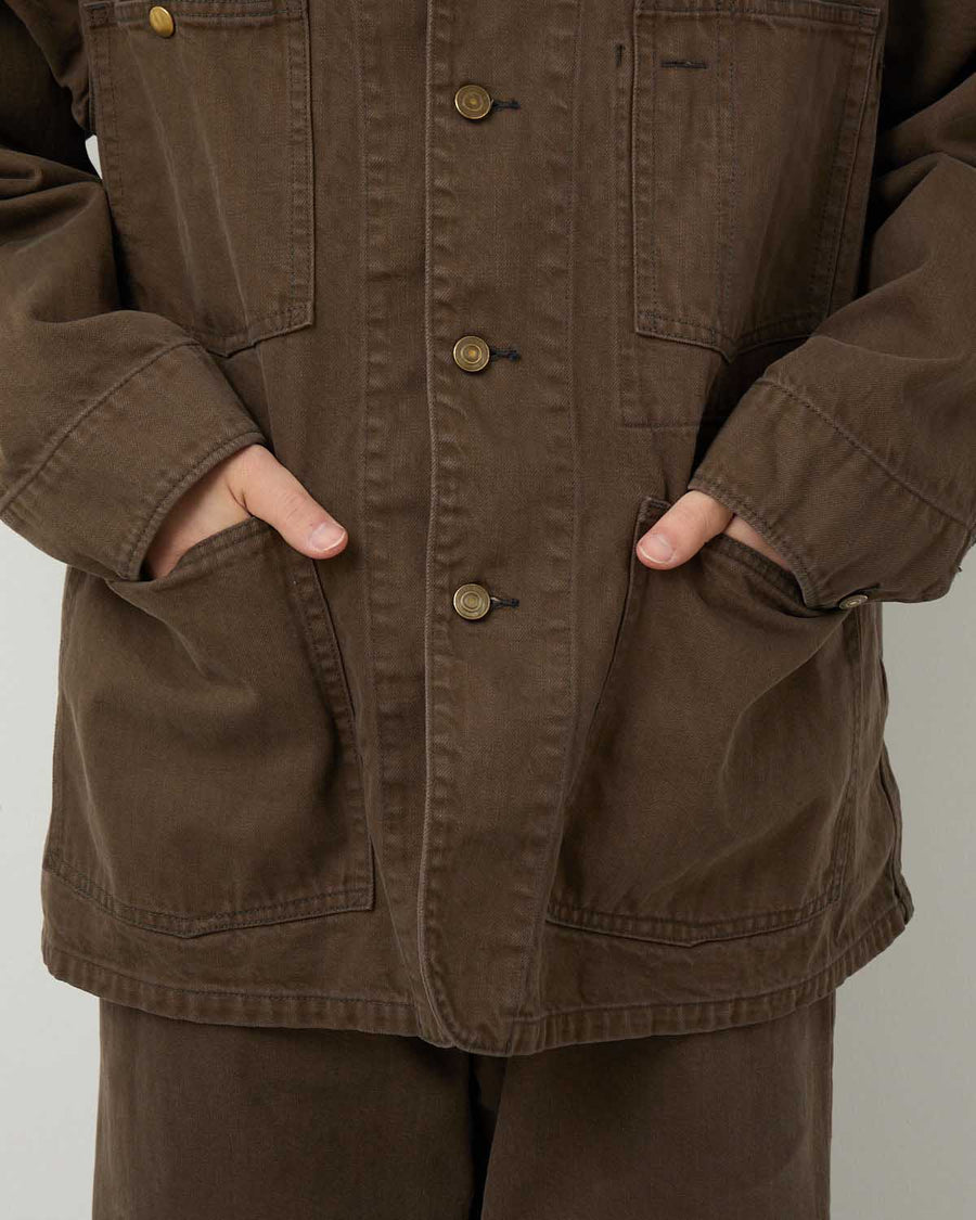 オーガニックコットン100%の11.8オンスデニムを使用した「UNLIKELY CHORE JACKET COLOR DENIM」です。