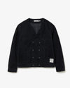 「MONK JACKET」のデザインを踏襲したネックディテールと、スナップボタンによるダブル仕立てのフロントが特徴的な「MONK BLOUSON」です。