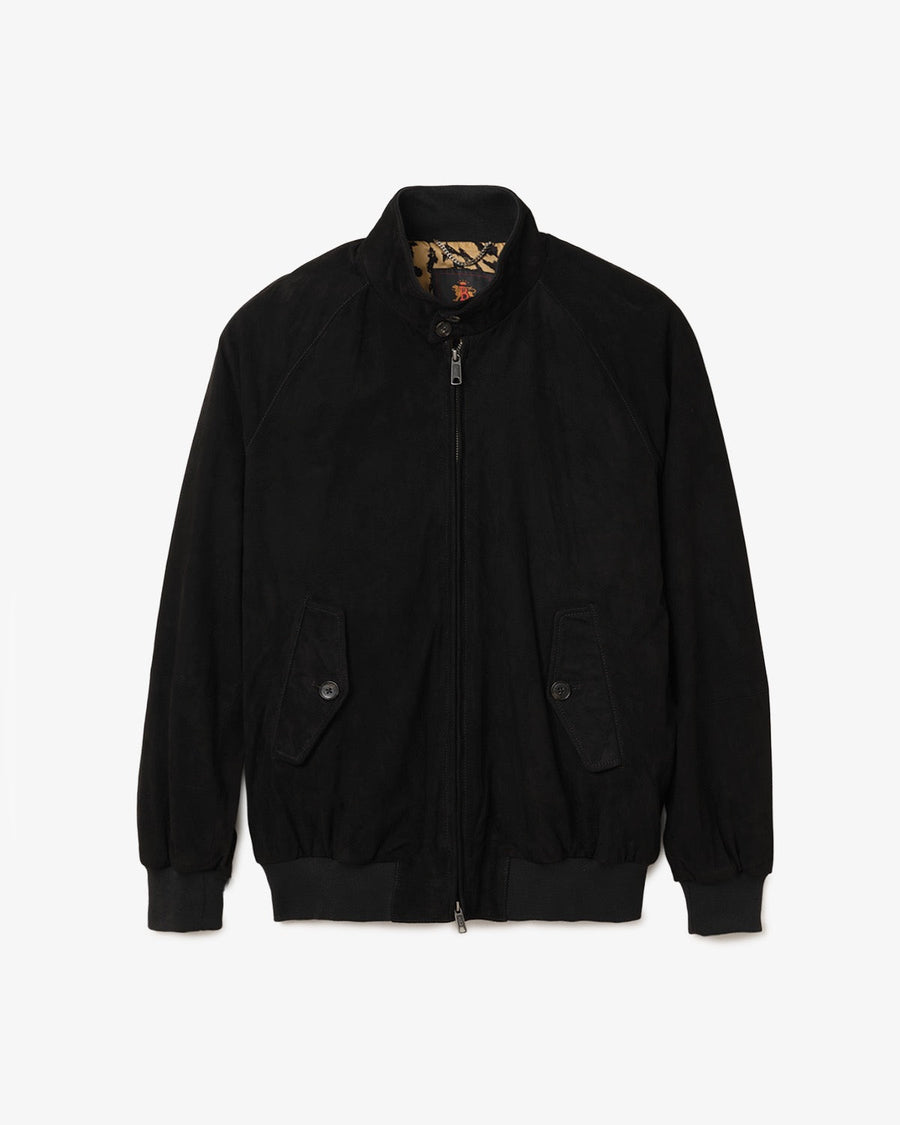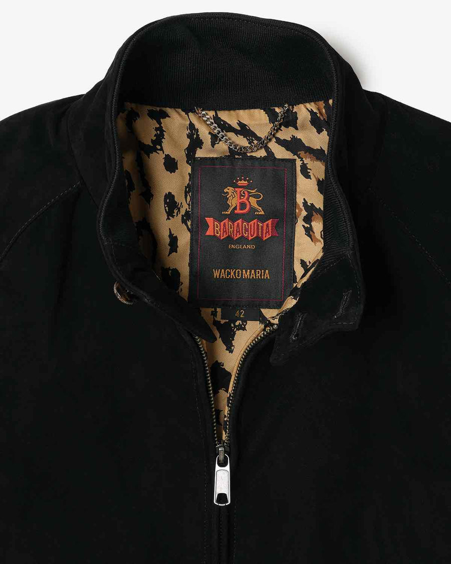 〈BARACUTA〉の代名詞であるハリントンジャケット「G9」をベースに、上質なスエード素材と〈WACKO MARIA〉らしいファブリックで裏地をアンレジしています。