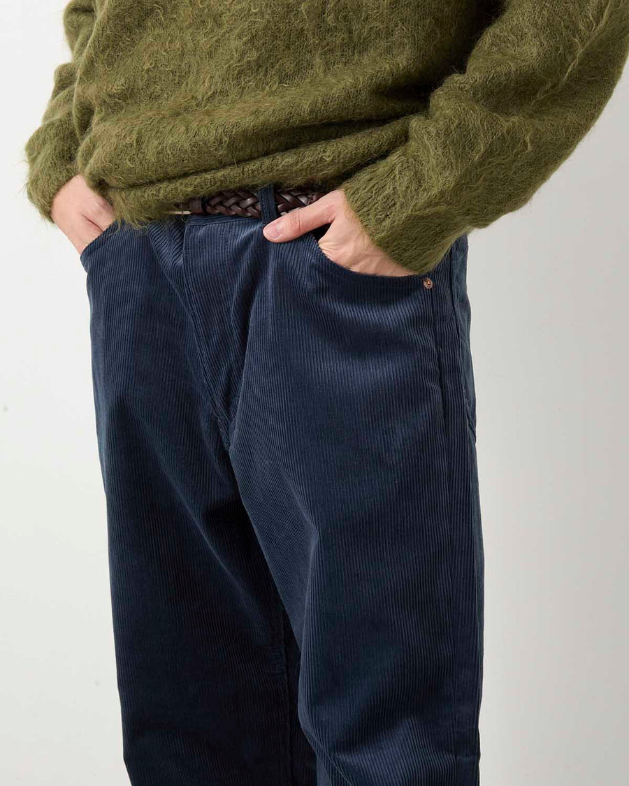 〈Lee〉のコーデュロイパンツをベースに、シルエットやディテールを〈WACKO MARIA〉のフィルターを通して再構築しています。