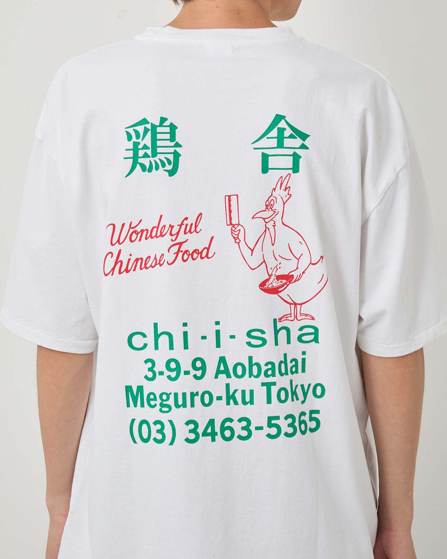 東京都目黒区の老舗中華料理店 鶏舎(チイシャ)とのコラボレーションプロダクトより、「鶏舎 / WASHED HEAVY WEIGHT CREW NECK T-SHIRT ( TYPE-5 )」です。