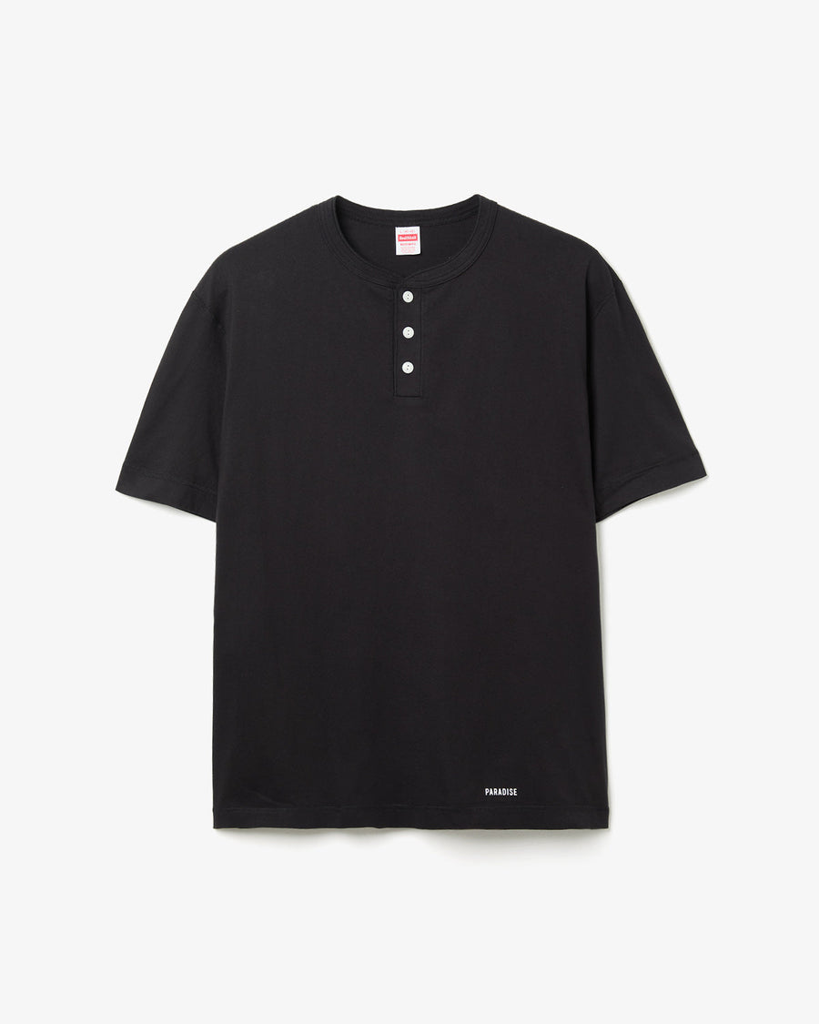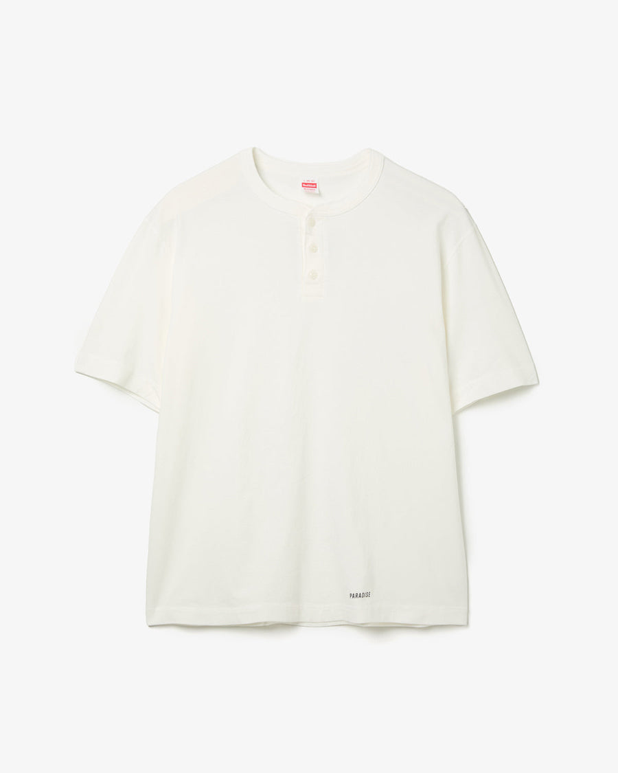 〈Healthknit〉のクラシックなヘンリーネックTシャツをベースに、背面に”WACKO MARIA”の刺繍を配してアレンジを加えています。