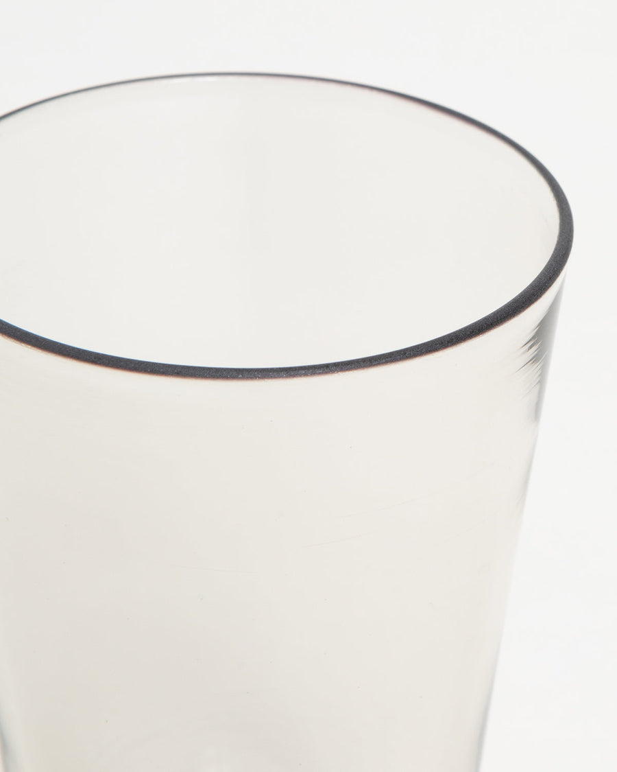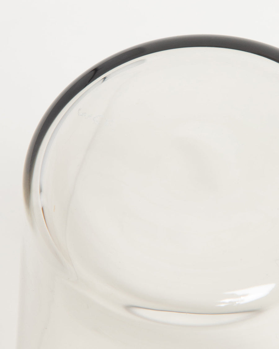 飲み口には黒のマットガラスを施し、灰色のガラスを全体に少量混ぜ込むことで素朴なグレーの色味を呈しています。