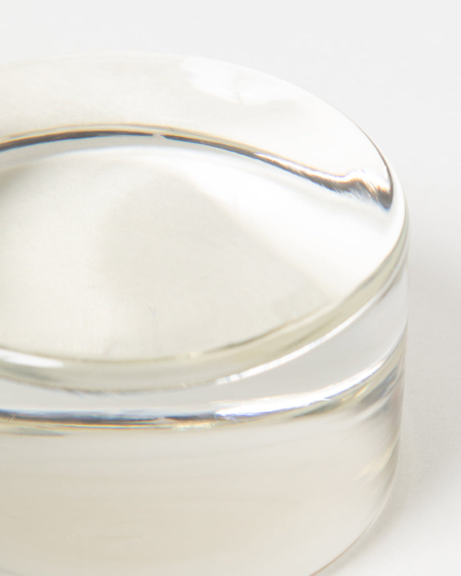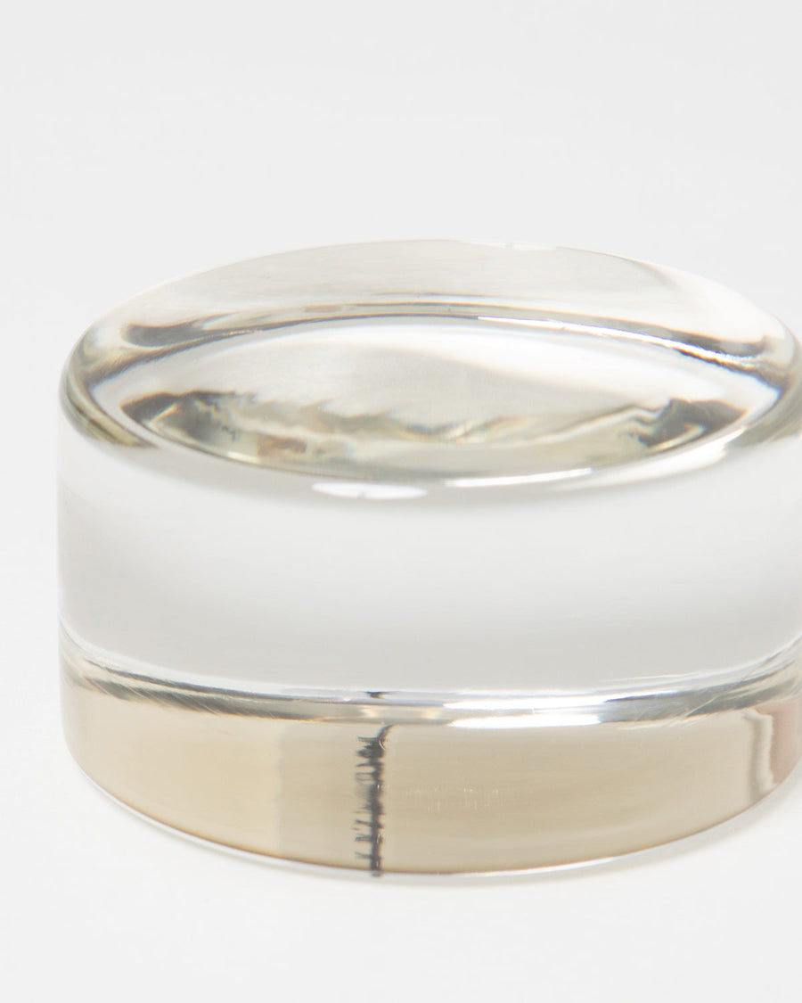 ほんのりと黄色味かかったクリアガラスが特徴の〈WASHIZUKA GLASS STUDIO〉のペーパーウェイトです。